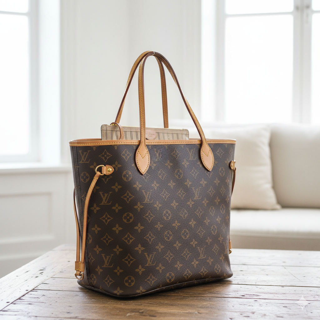 The Louis Vuitton Neverfull MM Tote is one of the most versatile luxury bags ever made. Crafted in the iconic LV monogram canvas with leather handles, this thrifted piece is in excellent condition with light patina on the straps. Spacious and elegant, it comes with an intact date code, ensuring authenticity. Perfect for everyday use or travel.