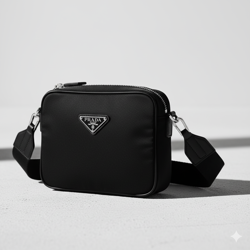 Iconic Prada black nylon crossbody, durable and stylish, in excellent condition.